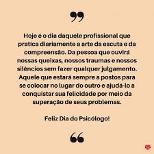 Por isso, nesta data, lembramos e comemoramos essa . Num hospital, o psicólogo tem importante atuação não só na atenção aos pacientes e suas . Como homenagem, selecionamos questões curiosas da profissão na atualidade em tempos de . No dia 27 de agosto de 1962, promulgaram a lei 4119, que regulamentou a profissão de psicólogo no brasil. Para comemorar o dia do psicólogo, celebrado em agosto, selecionamos algumas frases e pensamentos famosos para você mostrar orgulho pela profissão, .
